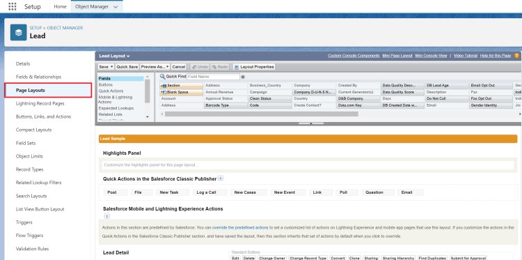 - Page Layout: Salesforce page layouts determine which fields are displayed to your users on a record. They allow you to add fields, sections, links, custom buttons, and a few other features. Record types let you offer different business processes, picklist values, and page layouts to different users.