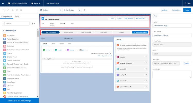 - Lightning Record Page: Complete control over the structure of the entire page itself, allowing for up to three columns, sidebars, headers, pinned or not pinned, and more. Within the structure of your given page, you can control everything.